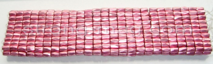 strandsuper magnetic 18 faced beads, dyed with silver base and pink colour, diameter 5mm by high 8mm,about 50pcs per strand 40cm length 5x8mm Ferrite Hematite Magnet A