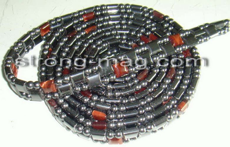 strip3 lines belt with inserted red tiger eye, consist by 10mm square magnetic spacer and red tiger eye spacer and 5mm round beads,2 meter length with extra 1 meter copolymer line, the product is prepared to make triple bracelets. 2M Ferrite Hematite Magnet A