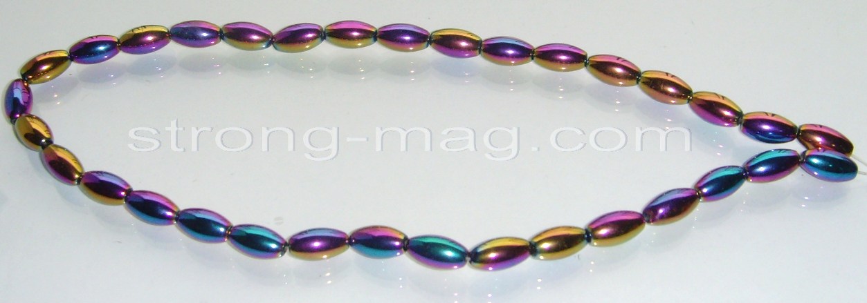 strandmagnetic rice beads,multi-colour plating like rainbow, diameter 6mm by high 12mm,about 33pcs per strand 40cm length 6x12mm Ferrite Hematite Magnet A