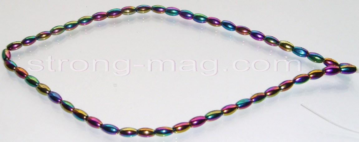 strandsuper magnetic rice beads, multi-colour plating like rainbow, diameter 5mm by high 8mm,about 50pcs per strand 40cm length 5x8mm Ferrite Hematite Magnet A