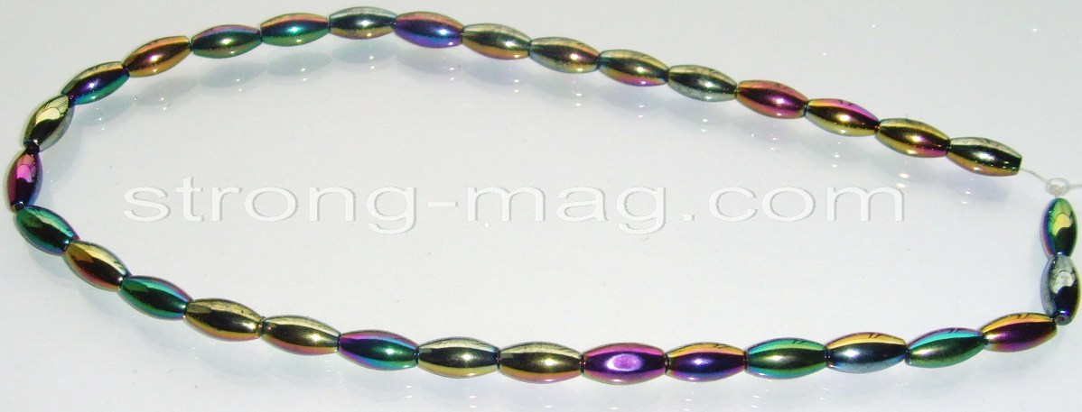 strandsuper magnetic rice beads,multi-colour plating like rainbow, diameter 6mm by high 12mm,about 33pcs per strand 40cm length 6x12mm Ferrite Hematite Magnet A