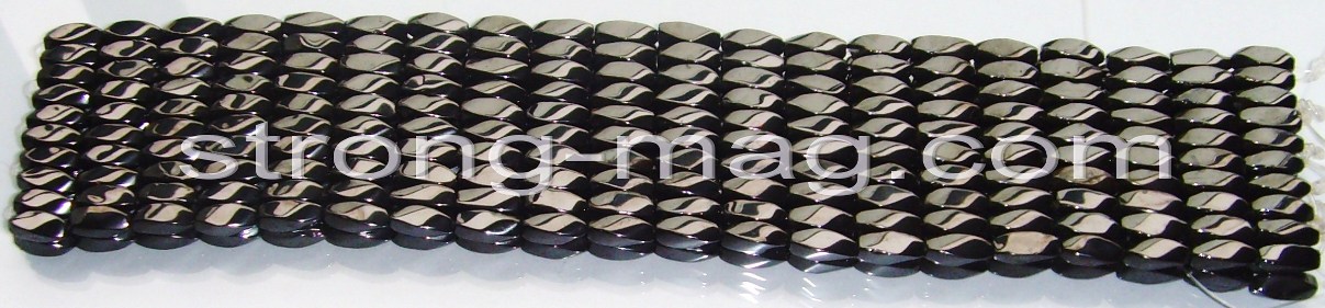 strandsuper magnetic shining twist beads, diameter 4mm by high 10mm, about 40pcs per strand 40cm length 4X10mm Ferrite Hematite Magnet A