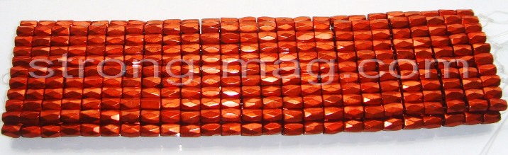 strandsuper magnetic 18 faced beads, dyed with nickel base and wine red colour, diameter 5mm by high 8mm,about 50pcs per strand 40cm length 5x8mm Ferrite Hematite Magnet A
