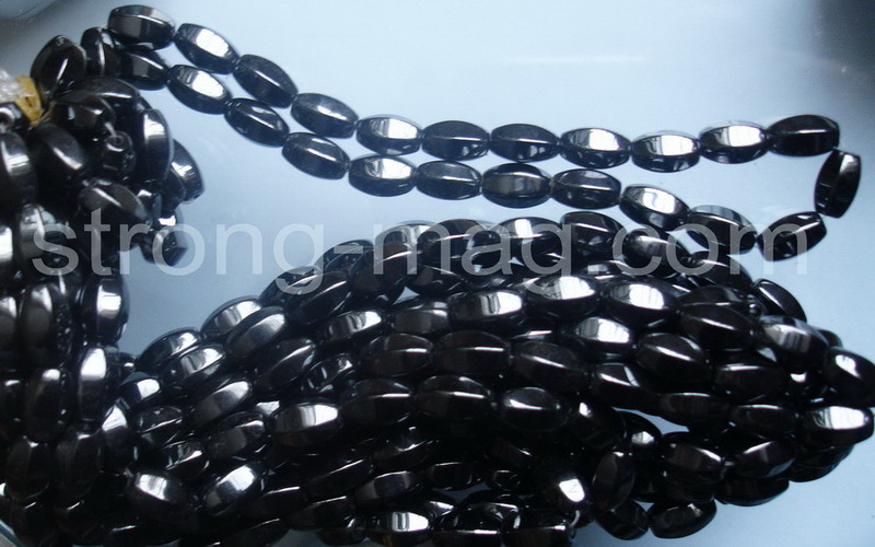strandmagnetic shining six streak rice beads, the dimension is diameter 8mm by high 12mm,about 34pcs per strand 40cm length 8X12mm Ferrite Hematite Magnet A