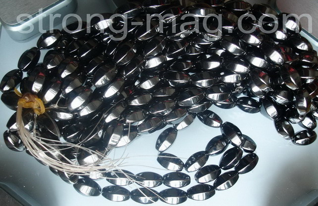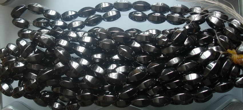 strandmagnetic shining six streak rice beads, the actual dimension is diameter 9mm by high 15.6mm, about 25pcs per strand 40cm length 9X16mm Ferrite Hematite Magnet A
