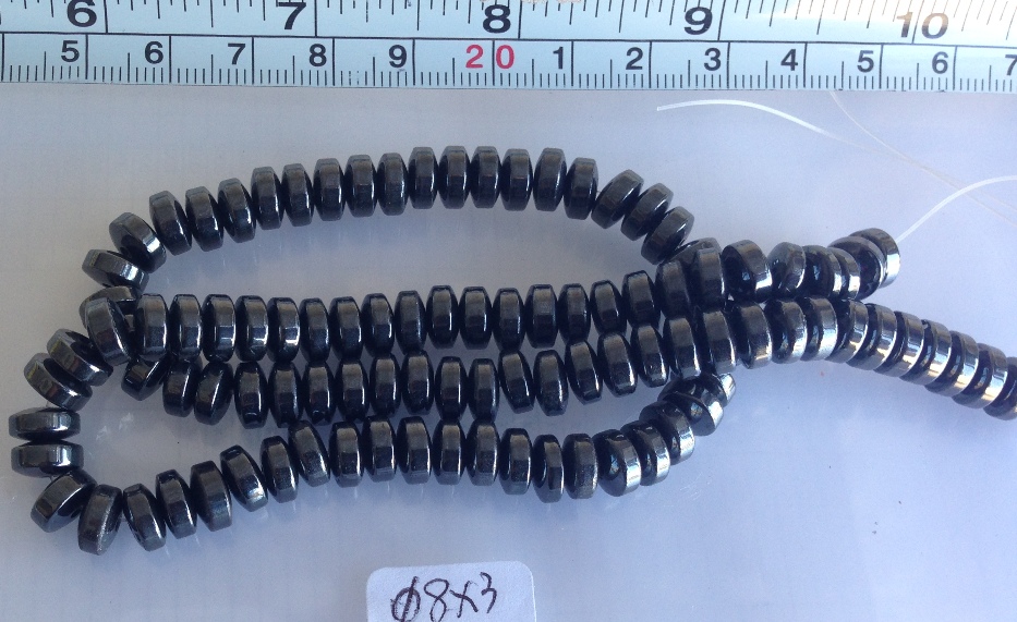 strandmagnetic shining rundle disk beads, diameter 8.7mm by thickness 3mm at the centre, and thickness is 2mm at the outside edge, about 122pcs per strand 40cm length 8X3mm Ferrite Hematite Magnet A
