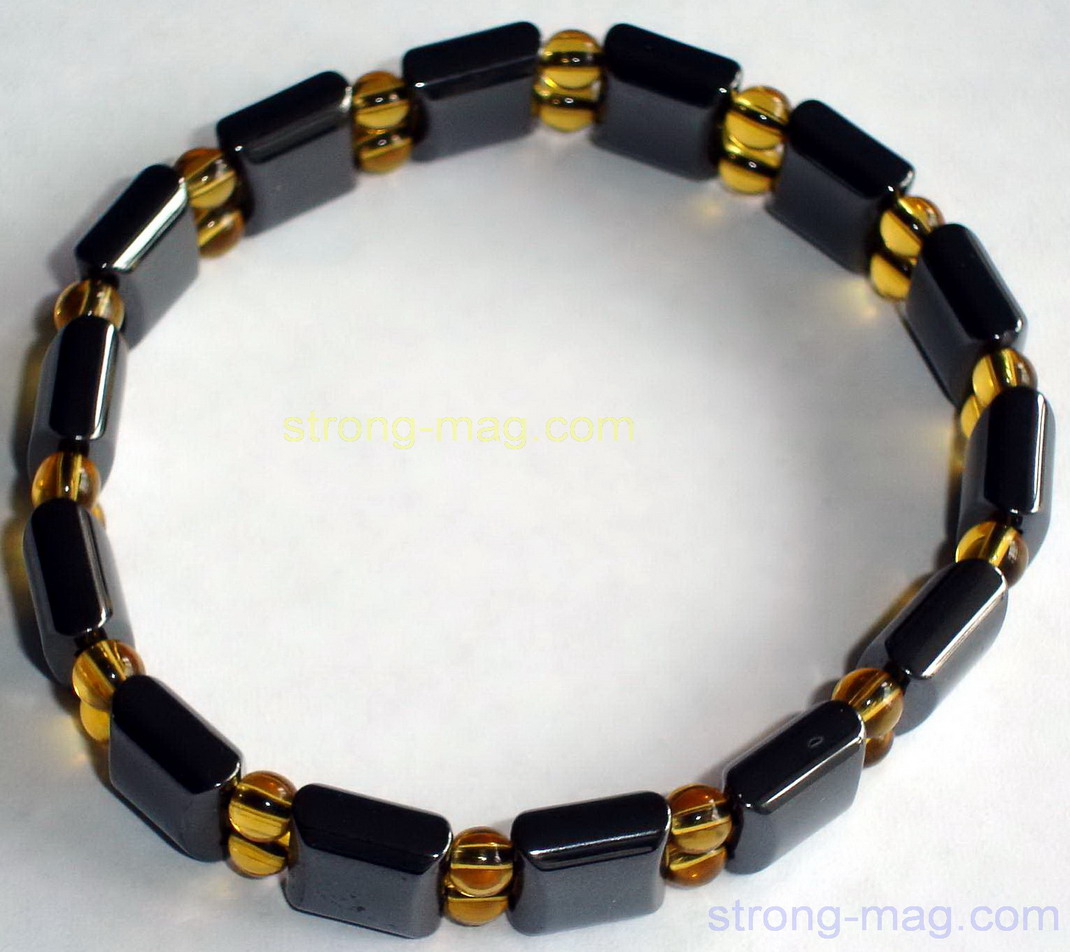 pcmagnetic elastic bracelet double lines, elastic length, black square 10mm magnetic spacer insert round 5mm brown glass beads 7 inch Ferrite Hematite Magnet A