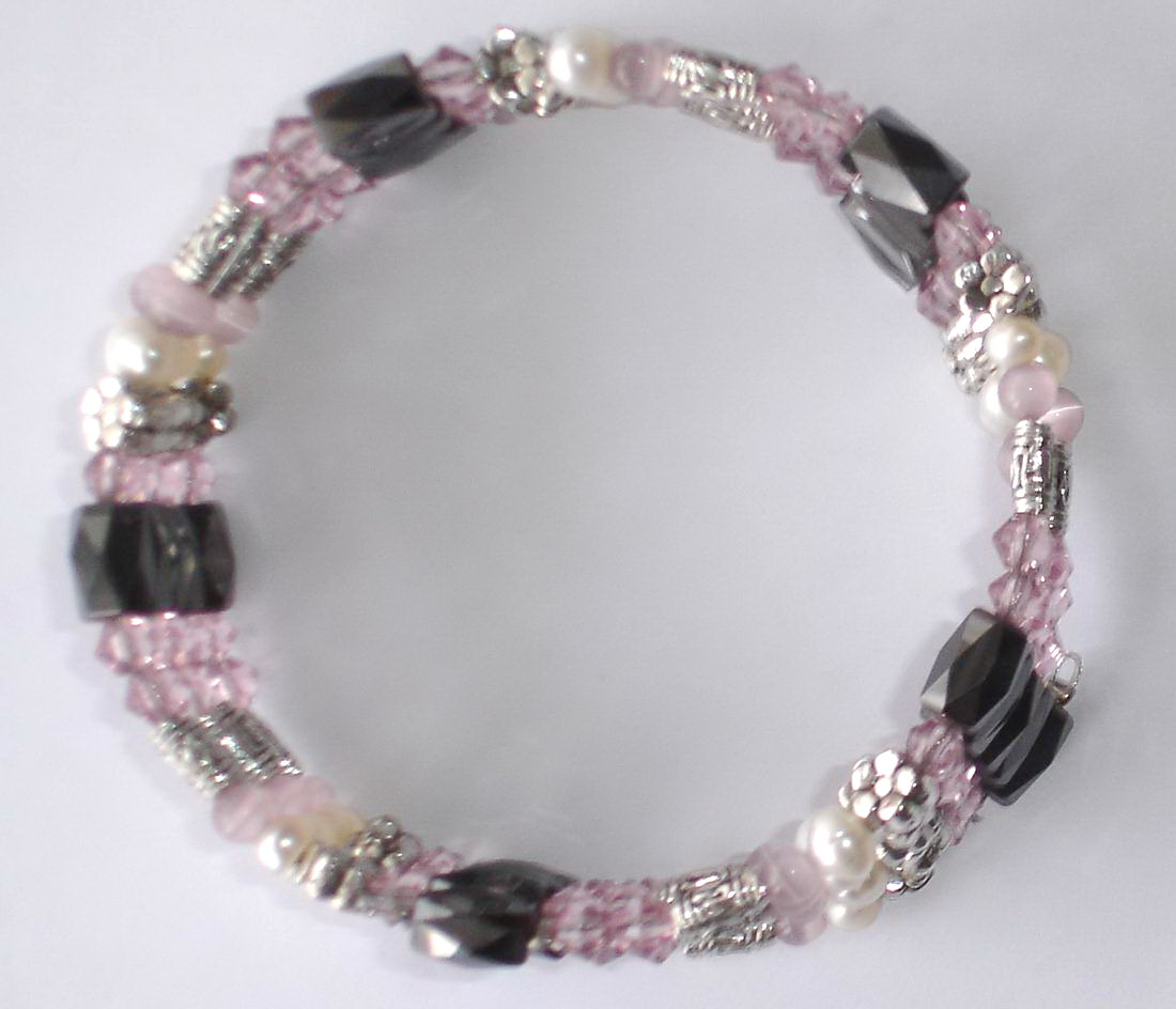 pcMagnetic wrap chain 36 inch length with pink colour, it consists of black super magnetic diamond shape beads 6x8mm with1000Guass and pink colour glass beads double cone 36 inch Ferrite Hematite Magnet A