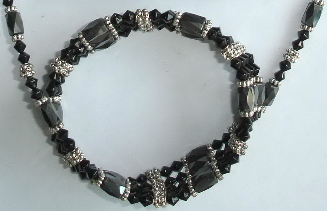 pcMagnetic wrap chain 36 inch length with all black colour, it consists of black super magnetic diamond shape beads 6x8mm with1000 Gauss and black colour glass beads double cone 36 inch Ferrite Hematite Magnet A