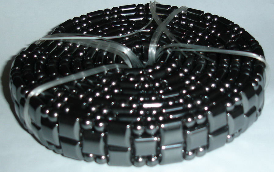 strand4 lines belt all black magnet with 5P design, consist of 10mm square magnetic spacer and 5mm round beads,2 meter length with extra 1 meter copolymer line, the product is prepared to make quaduple bracelets. 2M Ferrite Hematite Magnet A