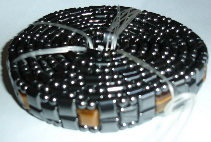 strand4 lines belt with inserted brown tiger eye, consist by 10mm square magnetic spacer and brown tiger eye spacer and 5mm round beads,2 meter length with extra 1 meter copolymer line, the product is prepared to make quaduple bracelets. 2M Ferrite Hematite Magnet A