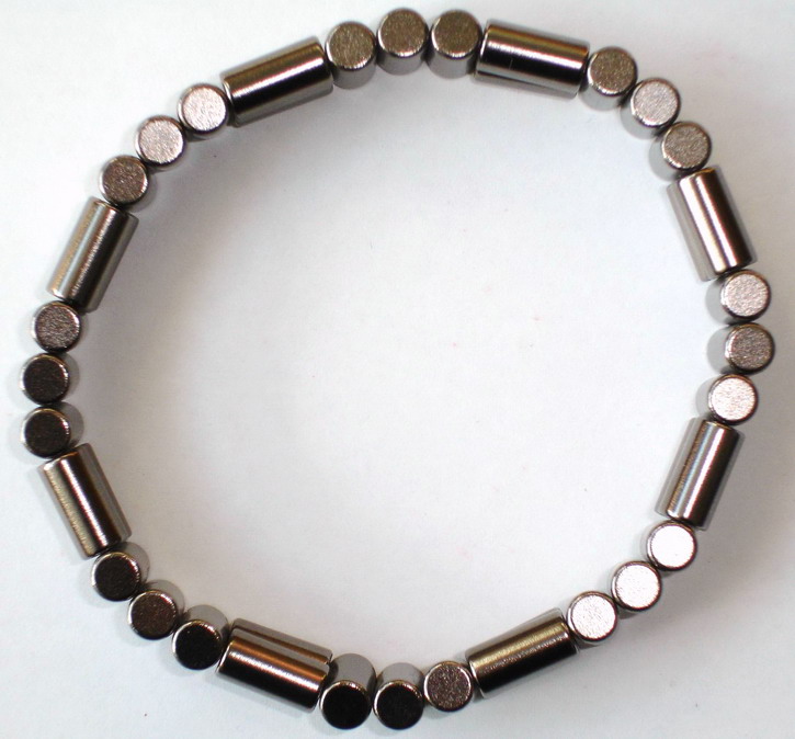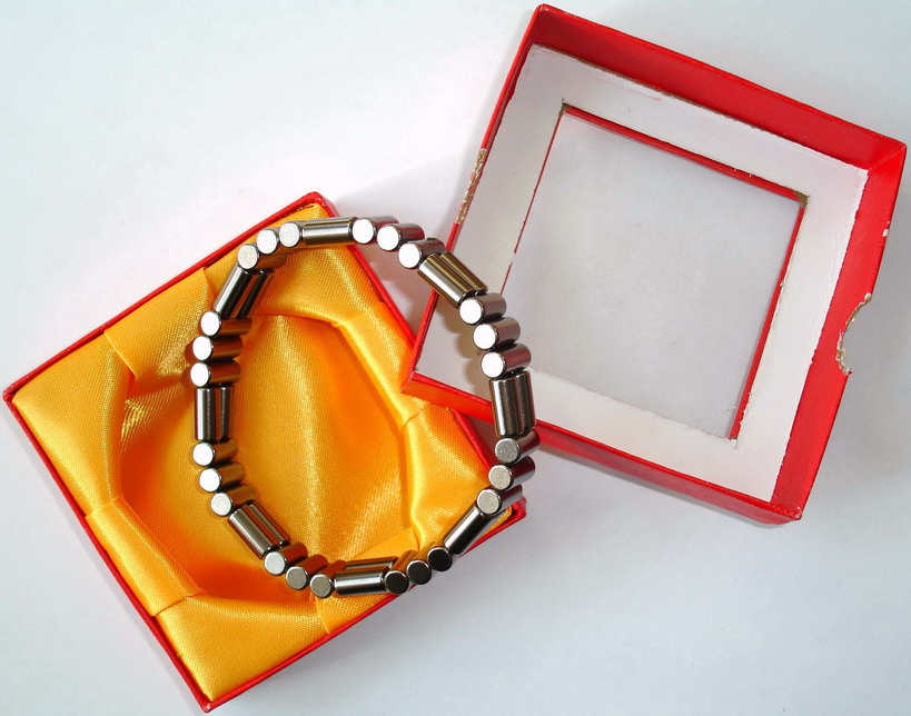 pcStrong magnetic bracelet 9 inch length, stringless bracelet by all rare earth magnets assembly, the length or style can be changed easily by taking off magnets or reassembly, it consists of 48pcs grey nickel plating rod 6mm by high 12mm 9 inch NdFeB Magnet A