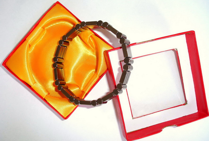 pcStrong magnetic bracelet 9 inch length, stringless bracelet by all rare earth magnets assembly, the length or style can be changed easily by taking off magnets or reassembly, it consists of numerous rod or bar magnets with golden or grey Ni pating 9 inch NdFeB Magnet A