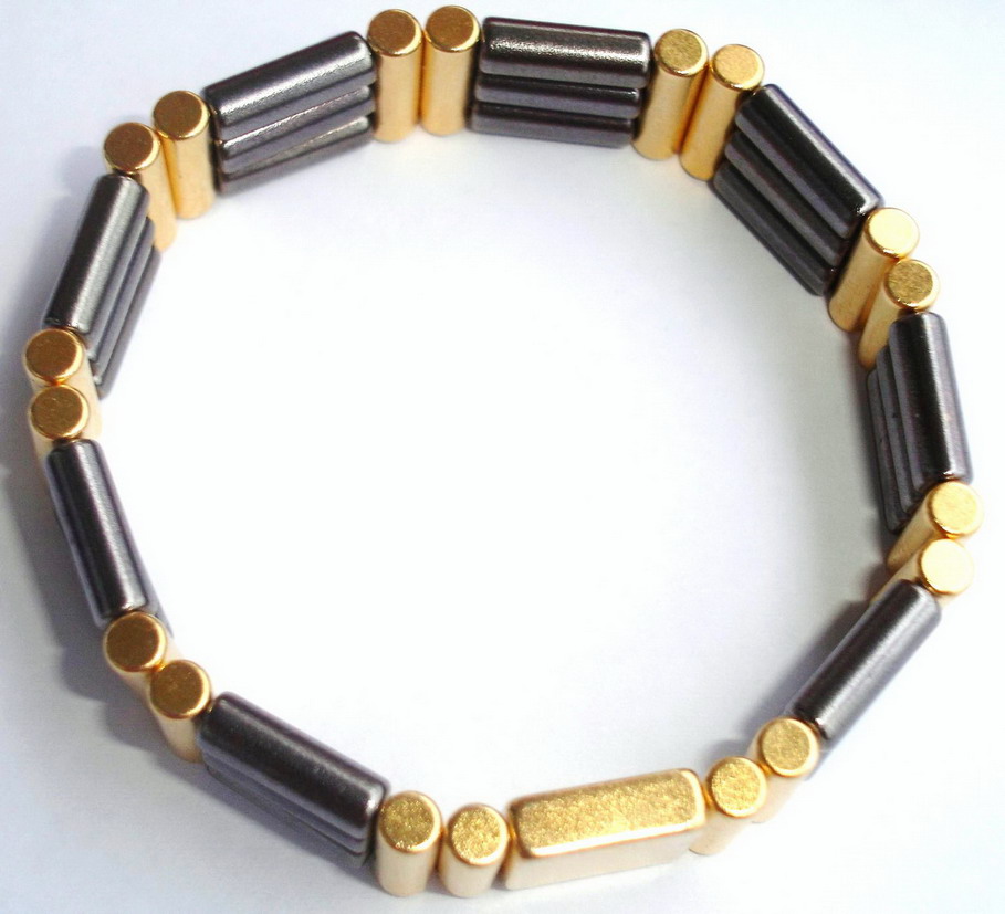 pcStrong magnetic bracelet 9 inch length, stringless bracelet by all rare earth magnets assembly, the length or style can be changed easily by taking off magnets or reassembly, it consists of numerous rod or bar magnets with golden or grey Ni pating 9 inch NdFeB Magnet A