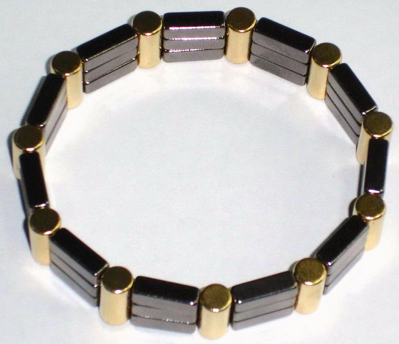 pcStrong magnetic bracelet 9 inch length, stringless bracelet by all rare earth magnets assembly, the length or style can be changed easily by taking off magnets or reassembly, it consists of numerous rod or bar magnets with golden or grey Ni pating 9 inch NdFeB Magnet A