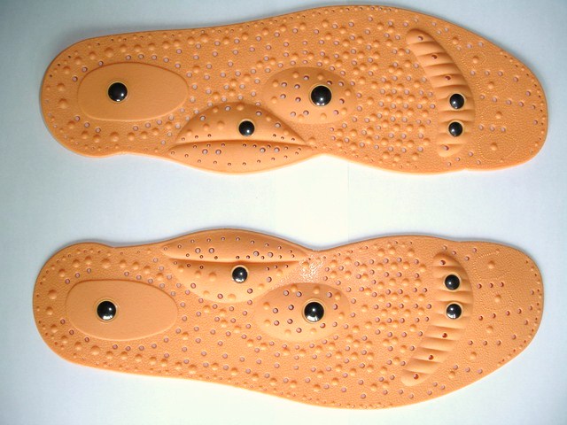 pairMagnetic PVC yellow insole is dotted by 10pcs black shining magnets,each magnet about 1000 gauss,can be trimmed to small size. 42/8/28cm Magnet PVC A