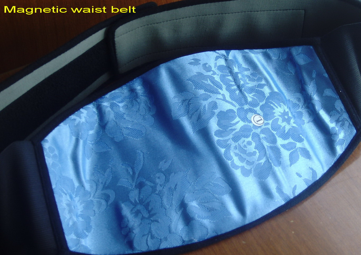 pcMagnetic waist belt is consisted by 9 arrays of magnets and bamboo,fit 90cm waist,total 106cm length,elstic design. The cloth pattern and colour are various. L Magnet A