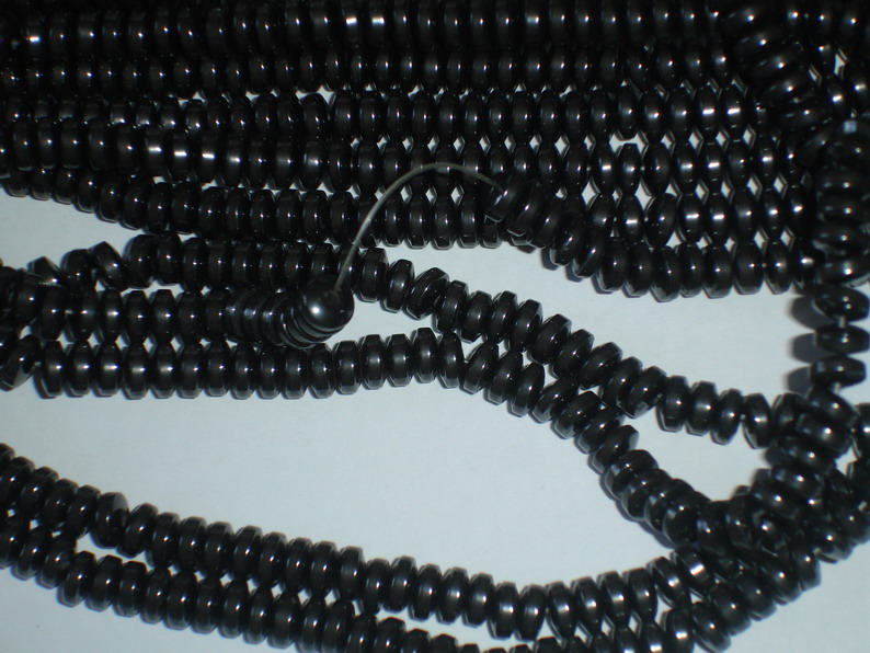 strandmagnetic shining disk ring beads, thick edge of rundle beads, diameter 6mm by thickness 3mm at the centre, and the thickness is 2mm at the outside edge, about 133pcs per strand 40cm length 6X3mm Ferrite Hematite Magnet A