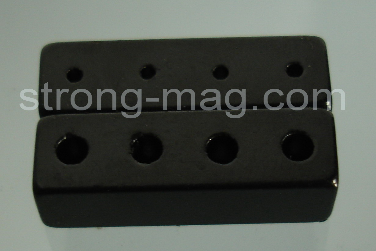 pairstrong magnetic clasp,black epoxy resin plating,rectangular shape with 4 sink holes, L 20mm by W 6mm by H 6mm, a pair of clasp consists of 1 male and 1 female. 20X6X6mm NdFeB Rare earth Magnet A