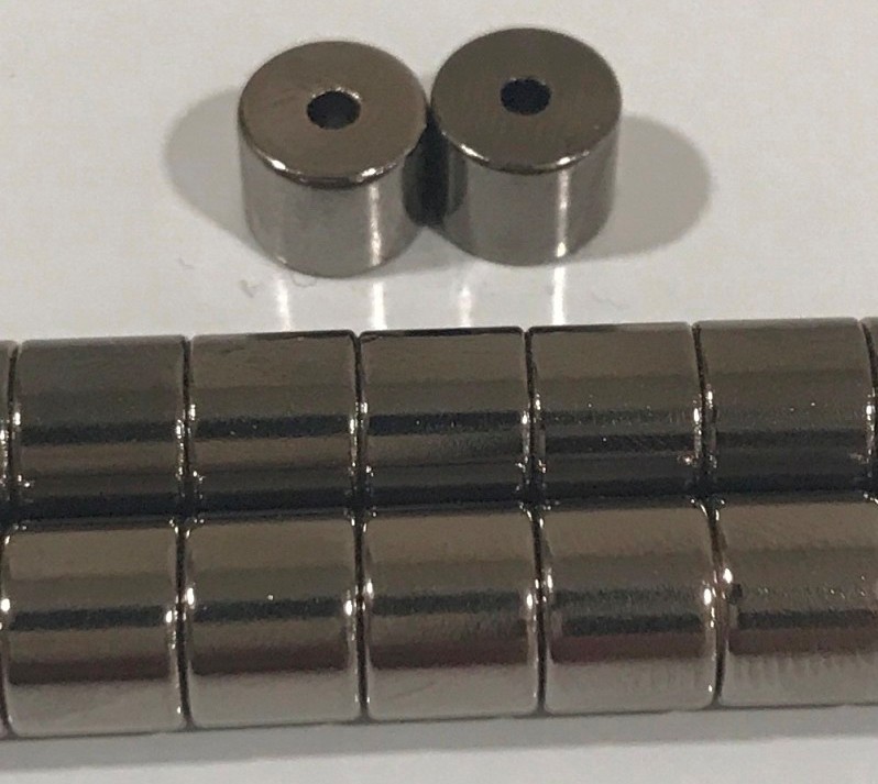 pairsstrong magnetic clasp,shining gery nickel plating,diameter 8mm by high 6.5mm with a sink hole, a pair of clasp consists of 1 male and 1 female. 8x7mm NdFeB Magnet A