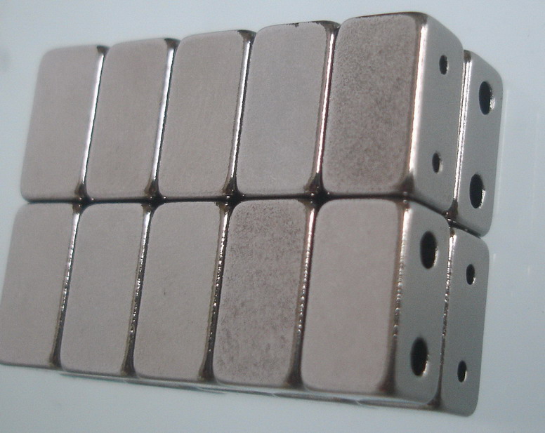 pairsstrong magnetic clasp N45 grade,grey nickel plating shining,rectangular shape with double sink holes, L 11mm by W 6mm by H 6mm, a pair of clasp consists of 1 male and 1 female. 11X6X6mm NdFeB Rare earth Magnet A