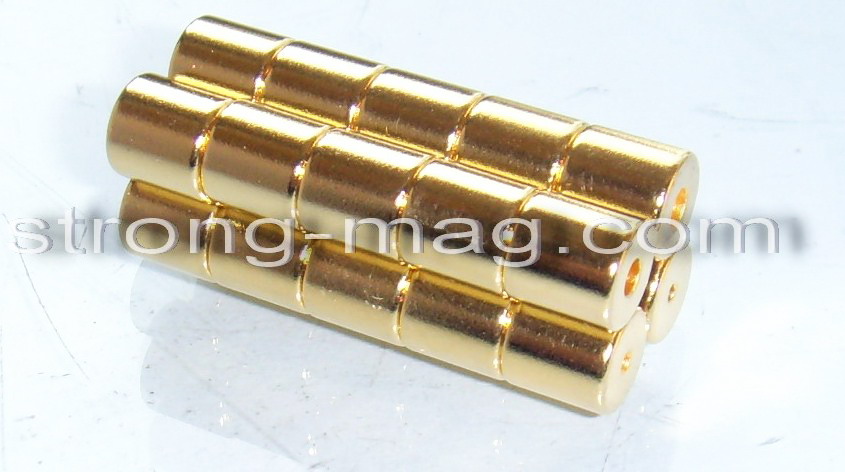 pairsstrong magnetic clasp, golden plating,diameter 6mm by high 6mm with a sink hole, a pair of clasp consists of 1 male and 1 female. 6X6mm NdFeB Rare earth Magnet A