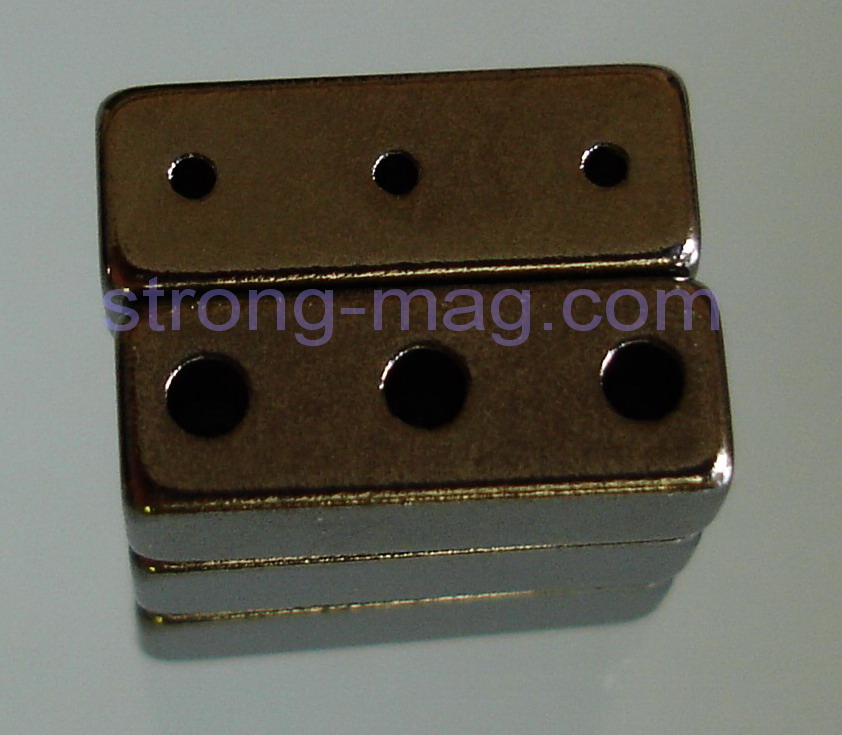 pairsstrong magnetic clasp,grey nickel plating shining,rectangular shape with three sink holes, L 16mm by W 6mm by H 6mm, a pair of clasp consists of 1 male and 1 female. 16X6X6mm NdFeB Rare earth Magnet A