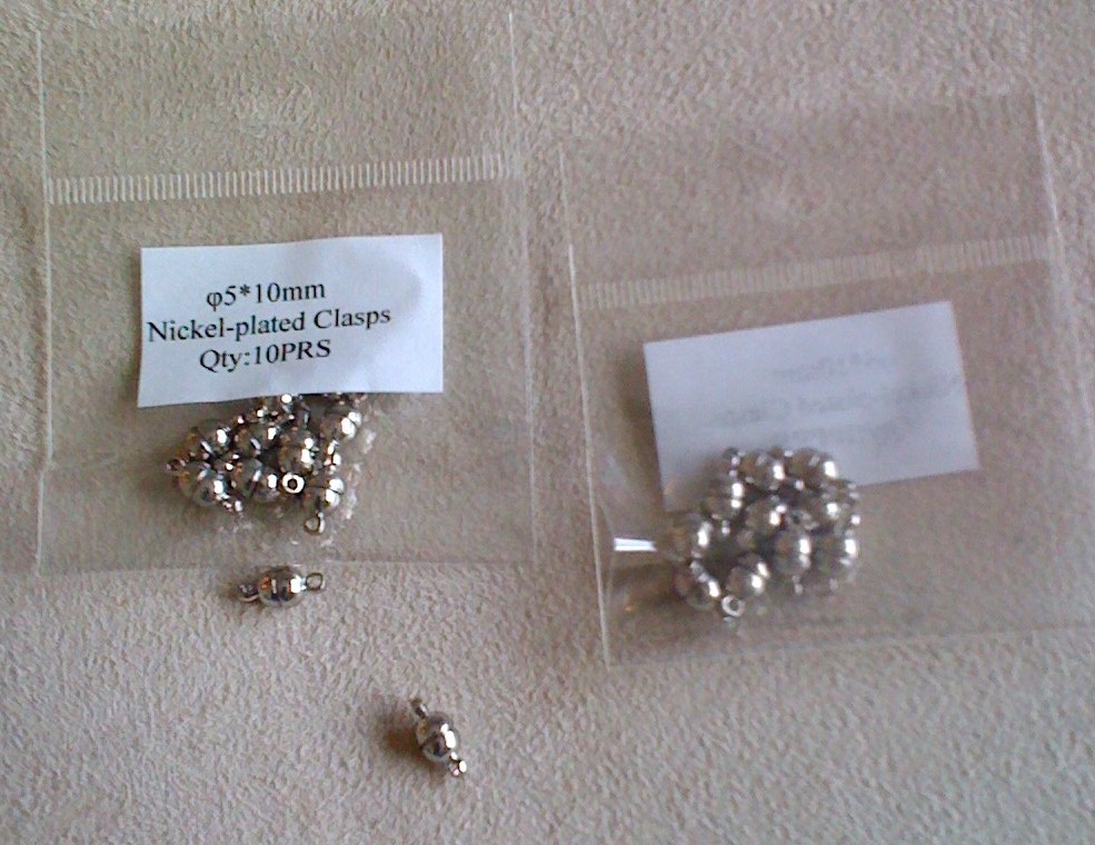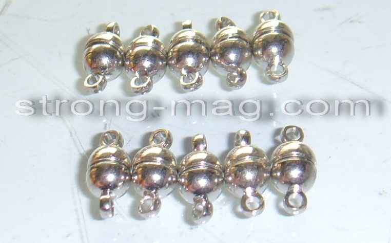 pairmagnetic clasp with lid shape, Nickel plating, it is mounted by copper shell and strong rare earth magnets inside, diameter 5mm by high 5mm. a pair of clasp consists of 1 male and 1 female. 5X10 mm NdFeB Magnet N35