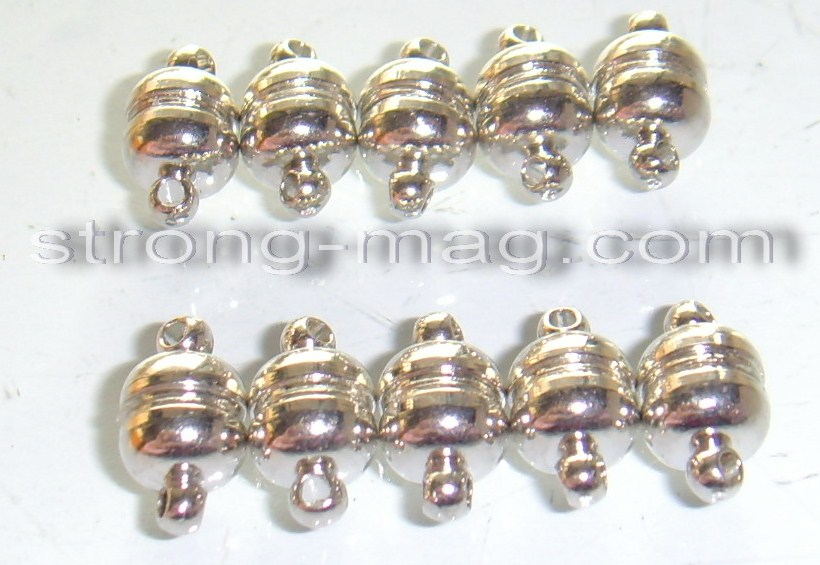 pairmagnetic clasp with lid shape, Nickel plating, it is mounted by copper shell and strong rare earth magnets inside, diameter 7mm by high 5.5mm. a pair of clasp consists of 1 male and 1 female. 7X11 mm NdFeB Magnet N35